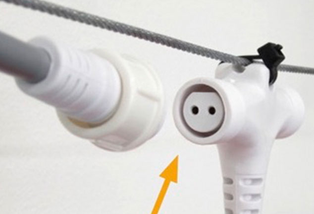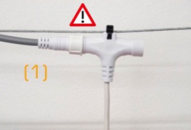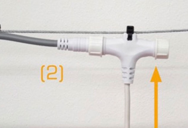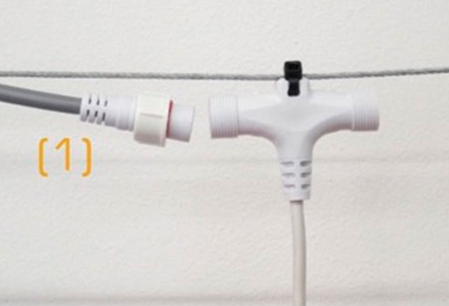 เสียบขั้วต่อสาย(1)กับขั้วต่อโคมและหมุนเกลียวข้อต่อให้แน่น
