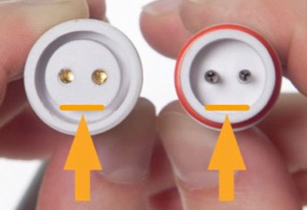 หันหัวต่อตัวผู้ – ตัวเมีย ด้านขั้วที่บากรอยไว้ทางเดียวกันและระดับเดียวกัน