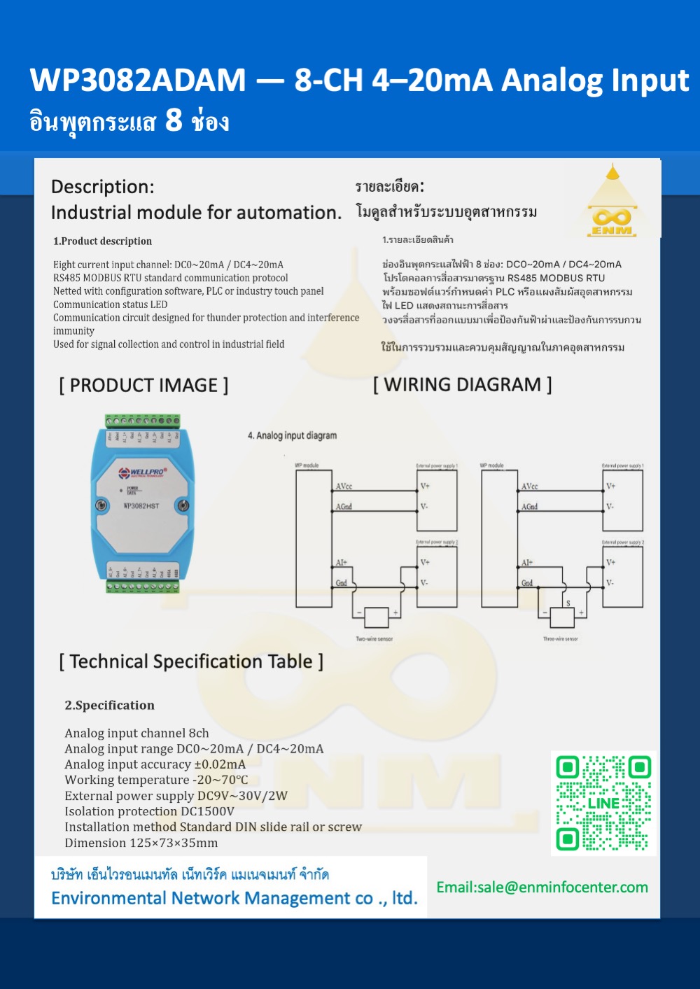 โมดูล IoT ของ ENM รองรับการรับสัญญาณจากเซนเซอร์แบบอนาล็อก (เช่น 4–20 mA, 0–10 V) และสัญญาณดิจิทัล แล้วแปลงเป็นข้อมูล RS-485 Modbus RTU เพื่อง่ายต่อการเชื่อมต่อกับ PLC, SCADA, ระบบฟาร์มอัจฉริยะ หรือแพลตฟอร์มคลาวด์ต่าง ๆ เหมาะสำหรับโปรเจ็กต์ Smart Farm, Smart Factory และงานที่ต้องรวมข้อมูลจากหลาย ๆ เซนเซอร์มาไว้ในระบบเดียว